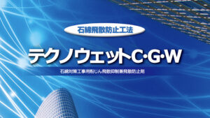 除去時の粉じん飛散抑制剤として。浮遊石綿・シート付着石綿固化に。皮膜形成で、除去面処理に。